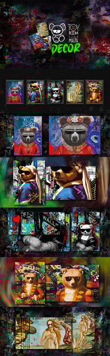 For this project, I designed the interior wallpaper of ToyRoom Malta, a nightclub where the walls became a central part of the atmosphere. The large-scale wallpapers transformed the space into a playful and entertaining environment, filled with iconic figures, from famous characters to anime references and the club’s signature bears.
