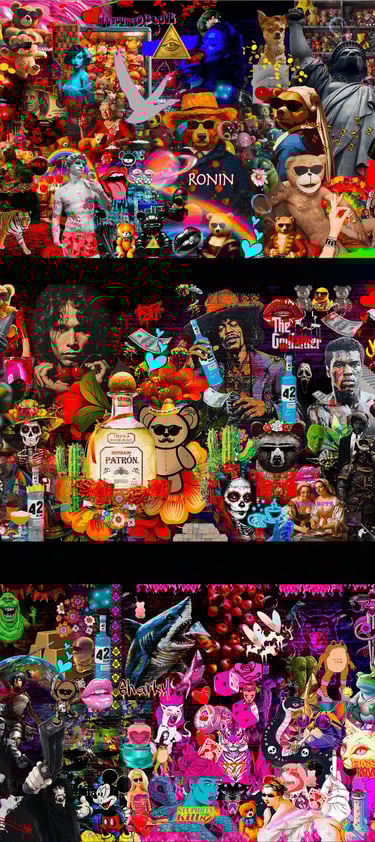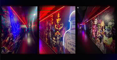 The illustrations were created using a combination of Photoshop, Illustrator, Procreate, and MidJourney, blending digital drawing with generative tools to achieve a bold and eclectic style. The result was an immersive visual experience that matched the club’s energetic identity, turning the walls into a vibrant backdrop for nightlife.
