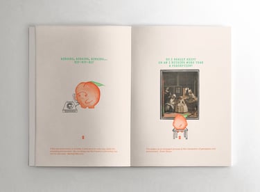 Peachy Wonders is a book developed around the idea of curiosity. At its core is a character who travels through different philosophical reflections, approaching them with a naive and questioning voice. The project explores how complex ideas can be reimagined and communicated through simplicity, imagination, and play.