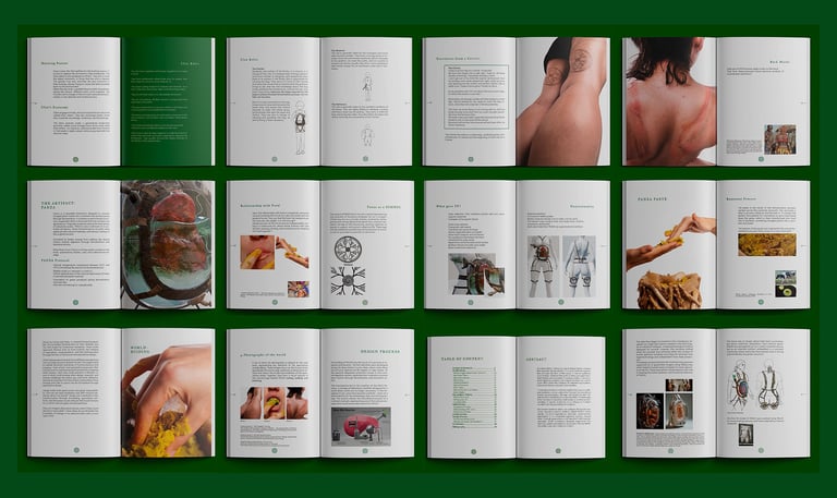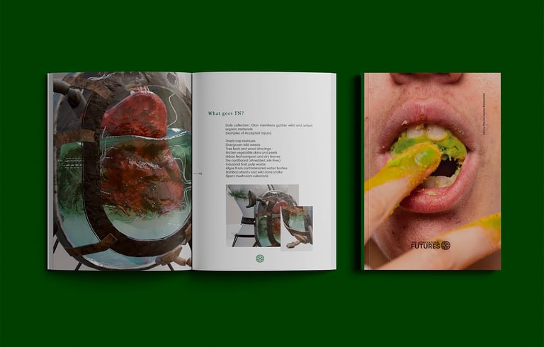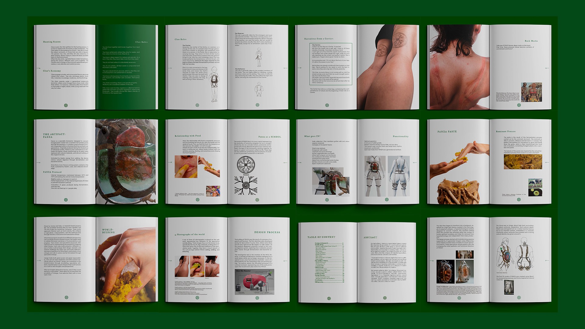 Pre-Agricultural Futures (2025) is a speculative futures thesis project that explores the possibility of a world without agriculture, through the lens of hunter-gatherer communities. Based on the work of anthropologist Marshall Sahlins and inspired by existing hunter and gatherers tribes and the ruminant digestive systems, the project imagines a civilization that, after the collapse of industrial agriculture, is forced to live as nomadic communities. Rather than a return to the past, it envisions hunter-gatherer societies as a leap toward ecological consciousness, reconnection with nature, and the rebuilding of communal life.